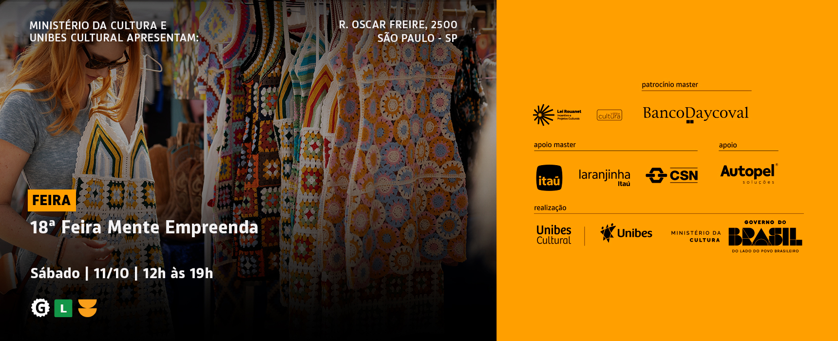No dia 11 de outubro de 2025, acontece a 18ª Feira Mente Empreenda, com o objetivo de promover microempreendedores de diversas áreas, como artesanato, acessórios e produtos sustentáveis. Para isso, oferece aos empreendedores selecionados um espaço privilegiado, com estrutura, apoio de produção e divulgação totalmente gratuitos.