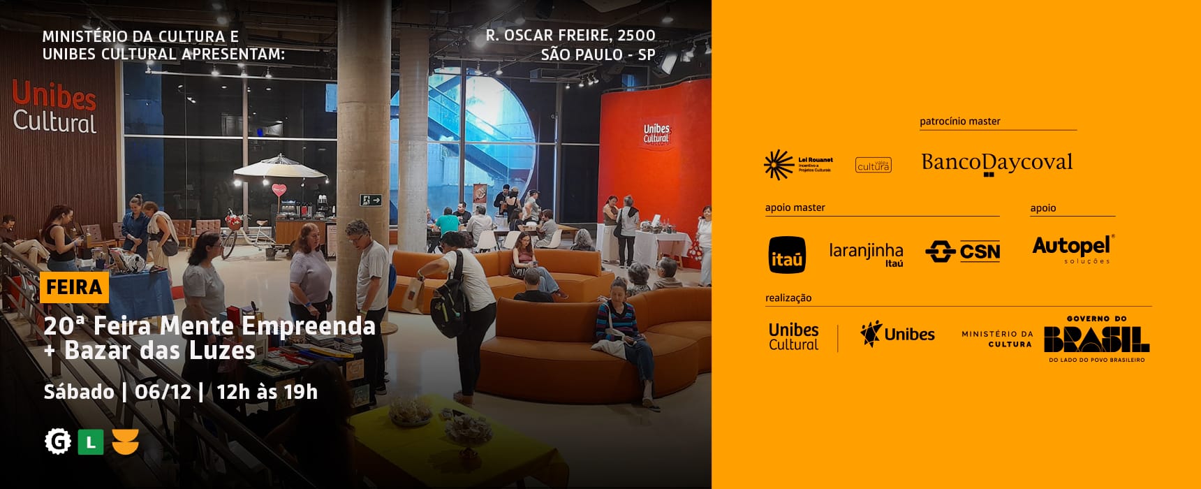 No dia 6 de dezembro de 2025, acontece a 20ª Feira Mente Empreenda, última edição do ano, com o objetivo de promover microempreendedores de diversas áreas, como artesanato, acessórios e produtos sustentáveis. Para isso, oferece aos empreendedores selecionados um espaço privilegiado, com estrutura, apoio de produção e divulgação totalmente gratuitos.