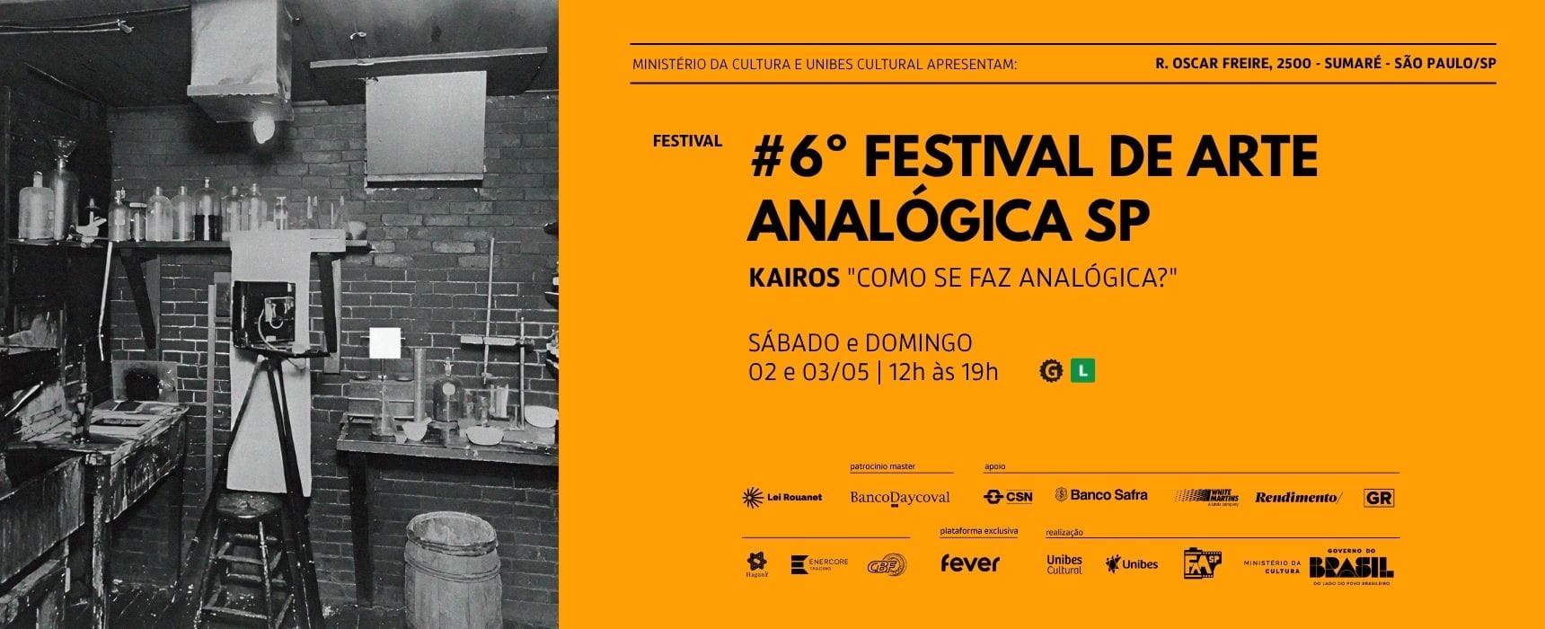 Nos dias 2 e 3 de maio de 2026, a Unibes Cultural recebe a 6ª edição do FAASP – Festival de Arte Analógica São Paulo, que neste ano propõe o tema Kairos – “Como se faz Analógica?”. O termo Kairos, de origem grega, refere-se ao tempo oportuno, à experiência do tempo vivido e qualitativo, em contraste com o tempo cronológico. A proposta do festival parte dessa ideia para refletir sobre os processos da arte analógica, nos quais o fazer manual, a espera e a experimentação ocupam um papel central.