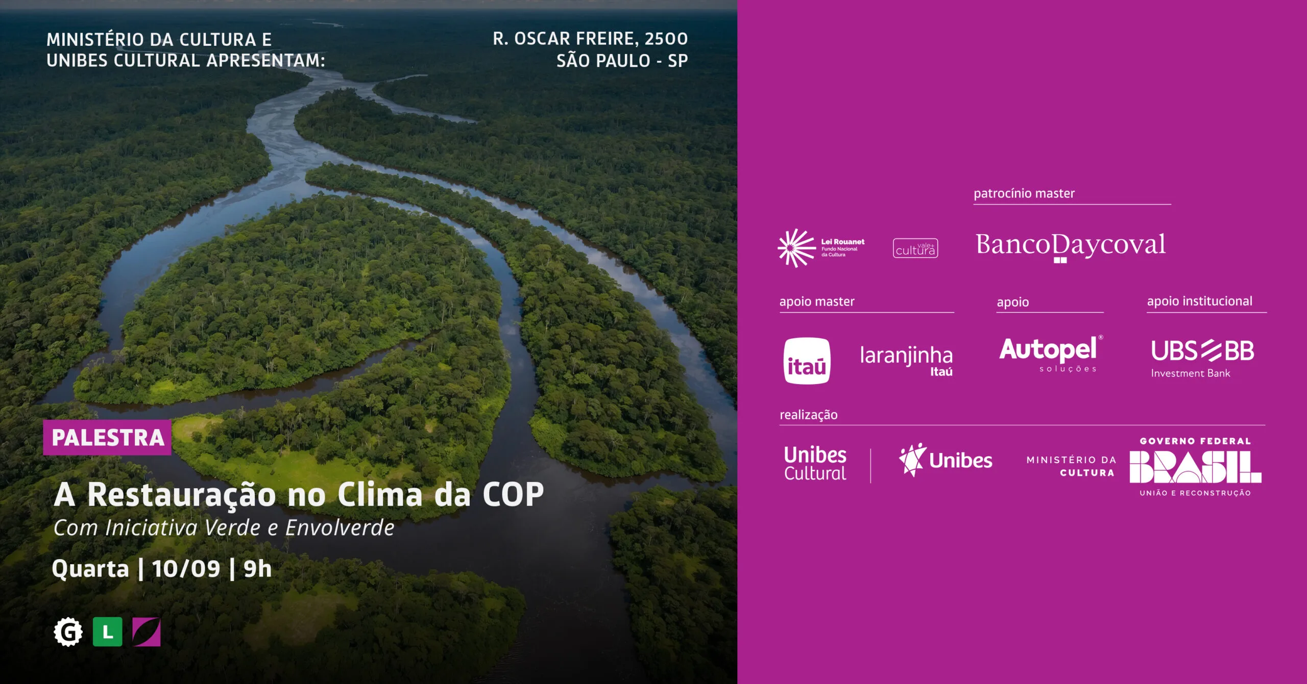 Considerando o momento pré-COP 30 Amazônia, o maior evento global para discussão e negociações sobre mudanças climáticas, e em plena Década da Restauração das Nações Unidas, a Iniciativa Verde e a Envolverde promovem o debate A Restauração no Clima da COP, sobre a restauração florestal e suas conexões com a adaptação e a mitigação das mudanças climáticas.