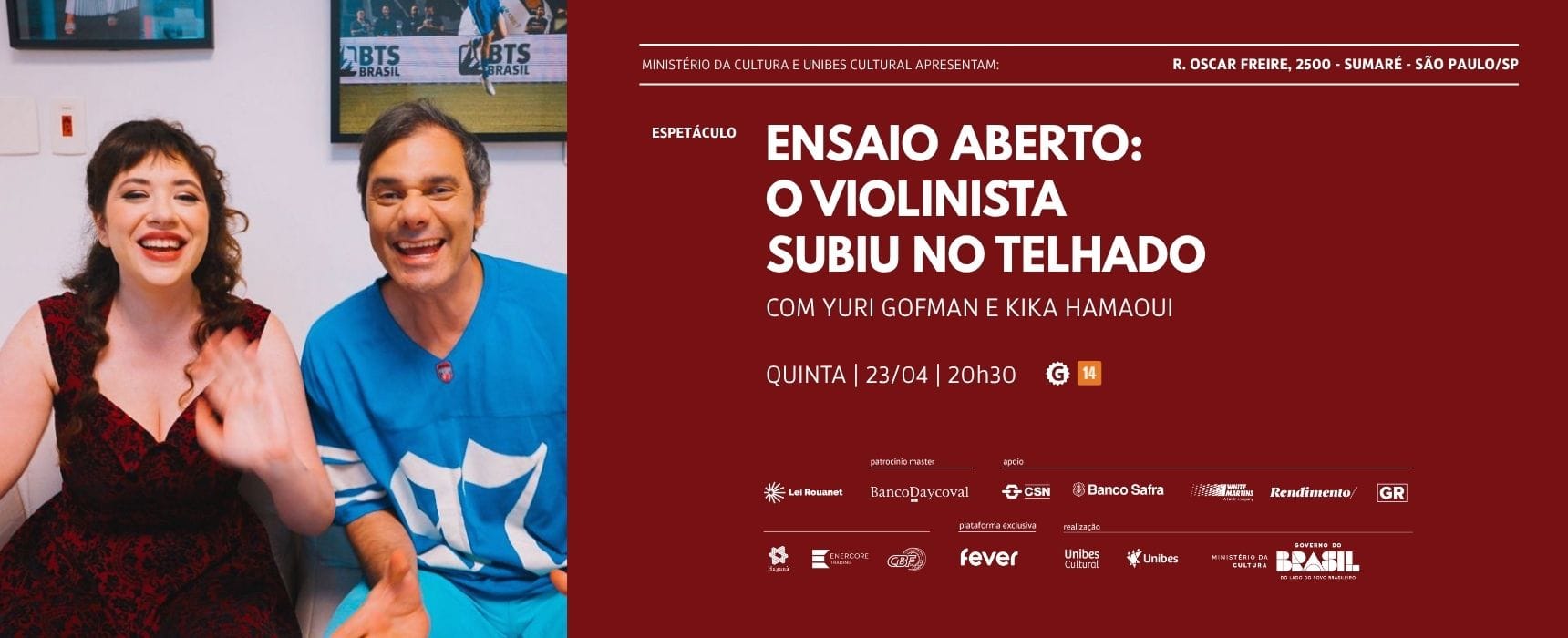 No dia 23 de abril de 2026, acontece o primeiro ensaio aberto de O Violinista subiu no telhado, convidando os espectadores a acompanharem de perto o processo criativo do espetáculo.