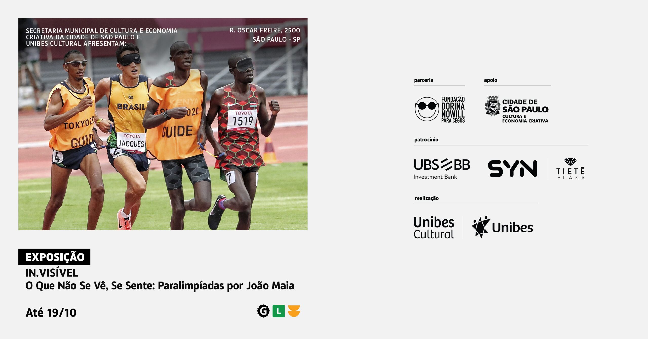 De 16 de agosto a 19 de outubro de 2025, a Galeria da Unibes Cultural apresenta a exposição do fotógrafo João Maia. Intitulada In.Visível – O Que Não Se Vê, Se Sente, a mostra apresenta uma seleção de fotografias realizadas durante os Jogos Paralímpicos de Paris 2024 a partir de uma percepção sensorial única. Os registros de João Maia, que é cego, revelam mais do que cenas: transmitem estados, pulsações e presença. Partindo de sons, movimentos e emoções que atravessam o corpo, o fotógrafo transforma o invisível em narrativa visual.