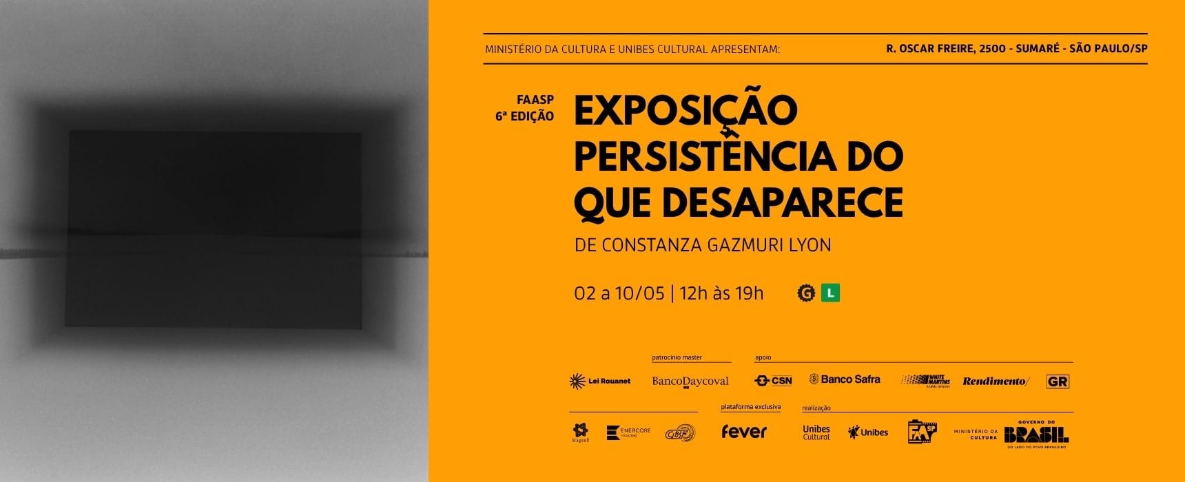De 2 a 10 de maio de 2026, a Unibes Cultural recebe a exposição Persistência do que desaparece, da artista chilena Constanza Gazmuri Lyon, como parte da programação do 6º FAASP – Festival de Arte Analógica de São Paulo – Kairos – “Como se faz Analógica?