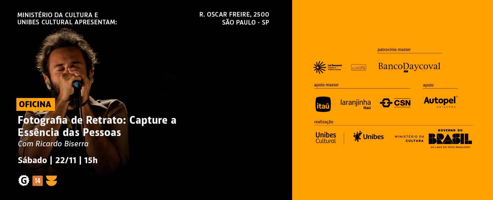 Esta programação faz parte do pilar Expressões Culturais, com apoio master do Itaú, Laranjinha Itaú e Grupo CSN, apoio da Autopel, patrocínio do Banco Daycoval e realização do Ministério da Cultura e Unibes Cultural, por meio da Lei Federal de Incentivo à Cultura (Lei Rouanet).