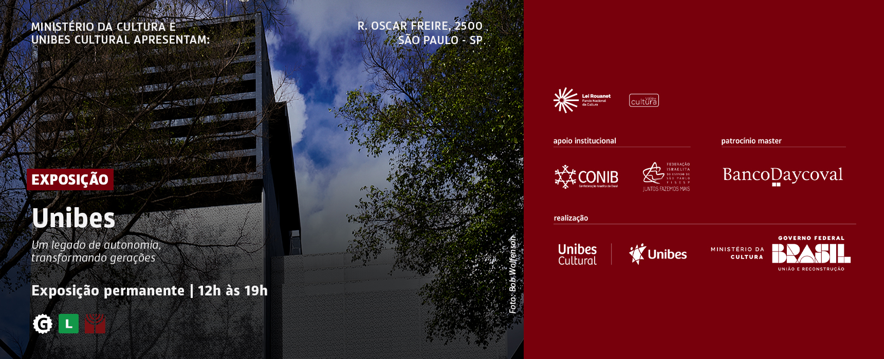 Esta programação faz parte do pilar Raízes Judaicas e conta com apoio de Autopel, Grupo GR e Grupo Haganá, patrocínio do Banco Daycoval e realização do Ministério da Cultura e Unibes Cultural por meio da Lei Federal de Incentivo à Cultura (Lei Rouanet).