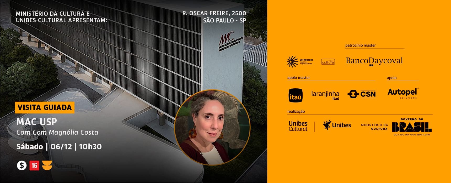 No dia 6 de dezembro de 2025, a Unibes Cultural promove uma visita guiada ao Museu de Arte Contemporânea da Universidade de São Paulo, o MAC USP, conduzida pela professora e crítica de arte Magnólia Costa.
